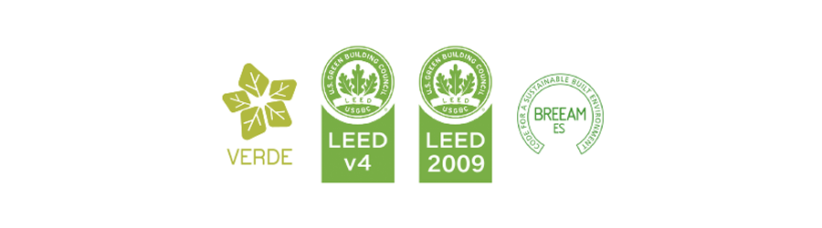| VERDE | LEED v4 | LEED v2009 | BREEAM® | BREEAM®ES | GRIHA & SVAGRIHA | ECOLABEL | QSOSTENIBLE | ||